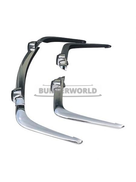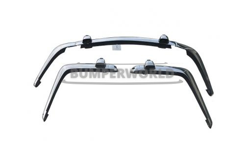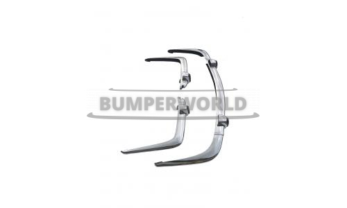 Front bumper in 3 parts, 2 rear bumpers with 2 empty license plate light caps and 4 over-riders with rubbers.